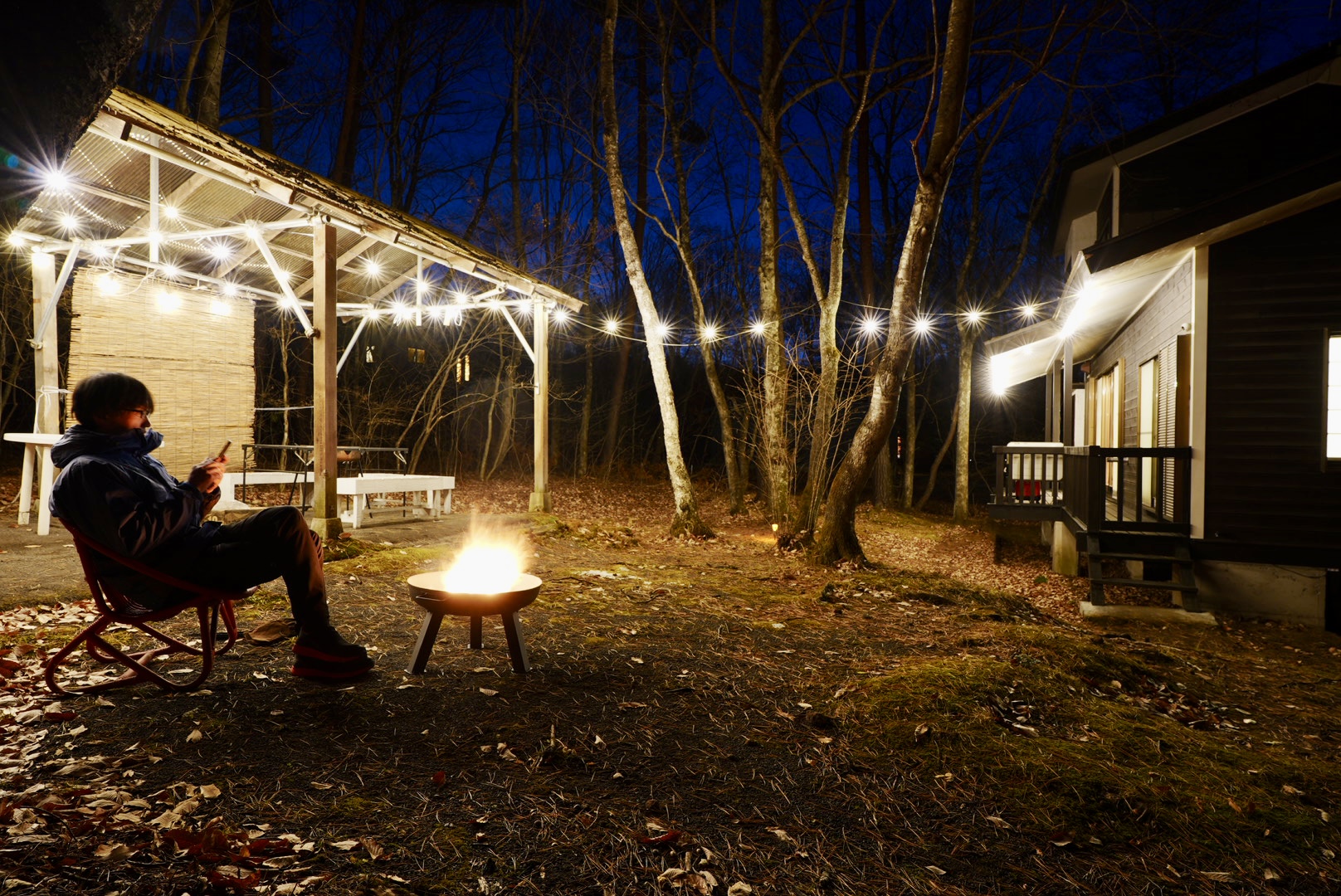 BBQスペースと併設して焚き火台をご用意しております。火を囲みながらゆったりとお過ごしください。